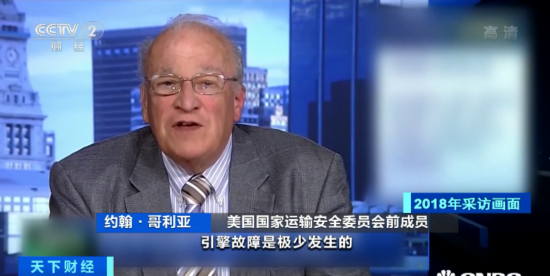 美国国家运输安全委员会前成员 约翰·哥利亚:对于现代飞机引擎来说,引擎故障是极少发生的,当今的飞机引擎非常可靠。