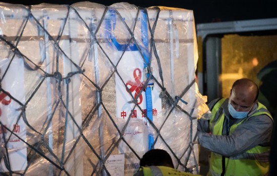 中国援助埃及的首批新冠疫苗运抵机场,援助阿盟秘书处的新冠疫苗也同机抵达。机场一下子忙碌起来,工作人员小心翼翼将疫苗从机舱转移至专门运输疫苗的冷链卡车。