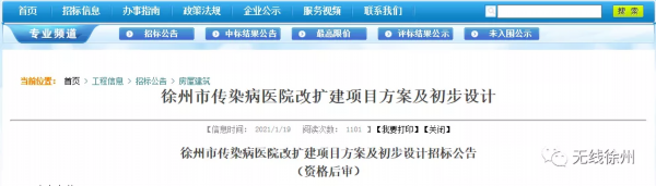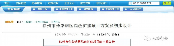 近日,徐州市公共资源建设工程交易平台发布徐州市传染病医院改扩建项目方案及初步设计。