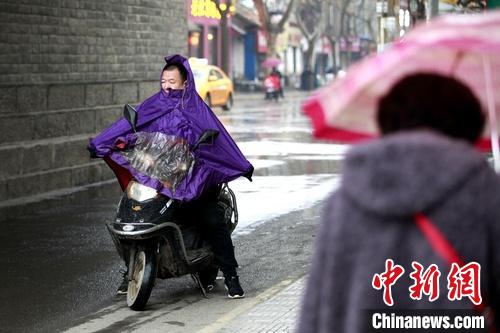 记者24日在西安街头看到,细雨飘落,冷风裹挟着寒意,路上行人多打着雨伞,穿着羽绒服、厚毛衣等御寒衣物,持续了数日的一派春意被寒流一扫而空。
