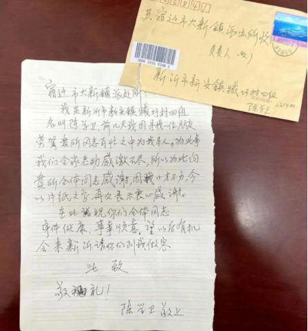 2月23日,宿迁市公安局宿豫分局大兴派出所收到一份来自江苏省新沂市的感谢信: