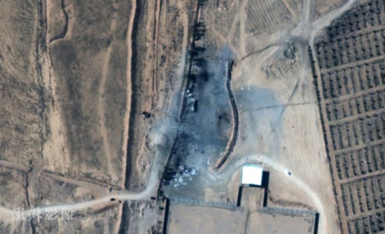 当地时间2021年2月26日,卫星图显示美军空袭叙利亚东部地区后,伊拉克叙利亚边境的房屋受损。 图片来源:澎湃影像