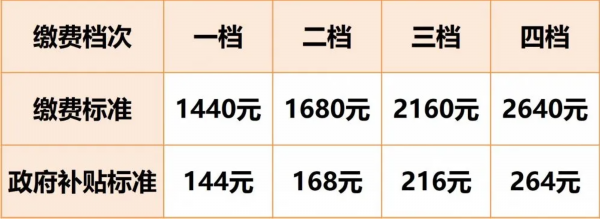 居民张某选择缴费档次“一档”,那么他需要缴纳居民养老保险费1440元,缴费到账后政府另外补贴144元计入其个人账户。