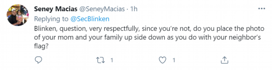 有网友嘲讽他说,“布林肯先生,非常恭敬的问一下,您是否也把自己母亲和家人的照片像邻国国旗一样倒置摆放?” ↓