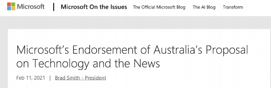 另外一个美国科技巨头微软就澳大利亚政府的法律表示支持。微软2月份发表的声明说:“该守则试图合理解决数码平台和澳大利亚新闻机构之间在议价问题上能力不平衡的问题。”