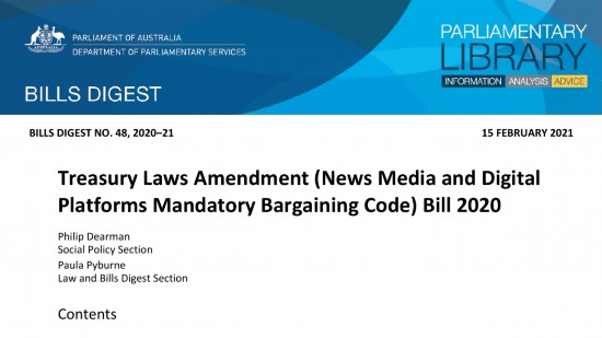 2020年12月9日,澳大利亚财政部提出了全球首个平衡利益分配不均、提升媒体议价能力的立法,叫《新闻媒体和数字化平台强制议价准则》。矛头直指美国互联网公司脸书和谷歌,希望解决本国媒体因美国科技公司而广告收入减少的问题。