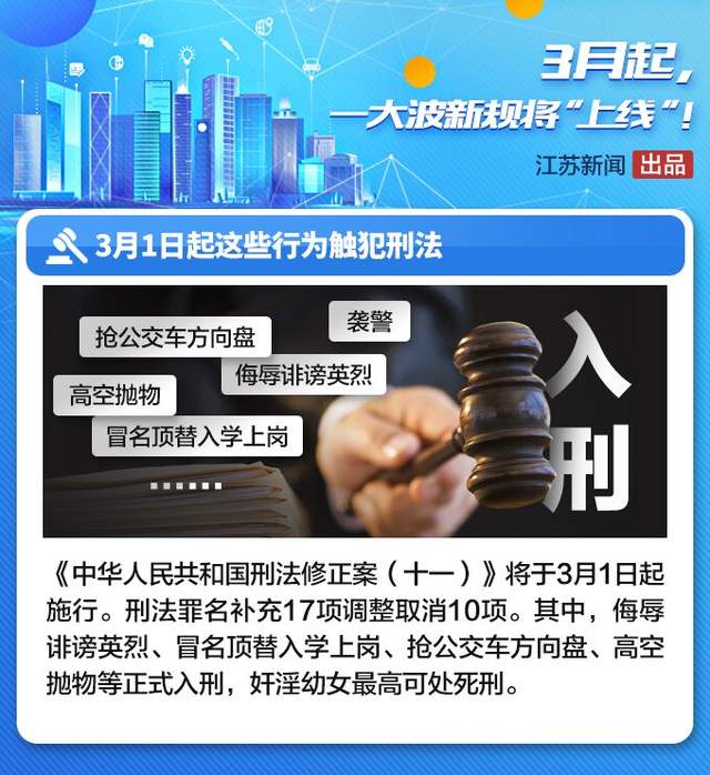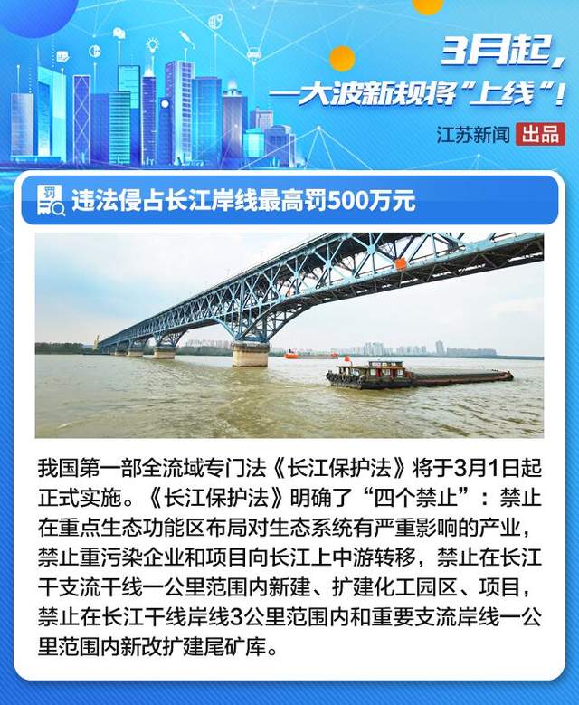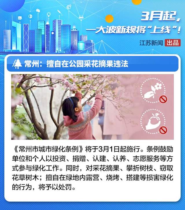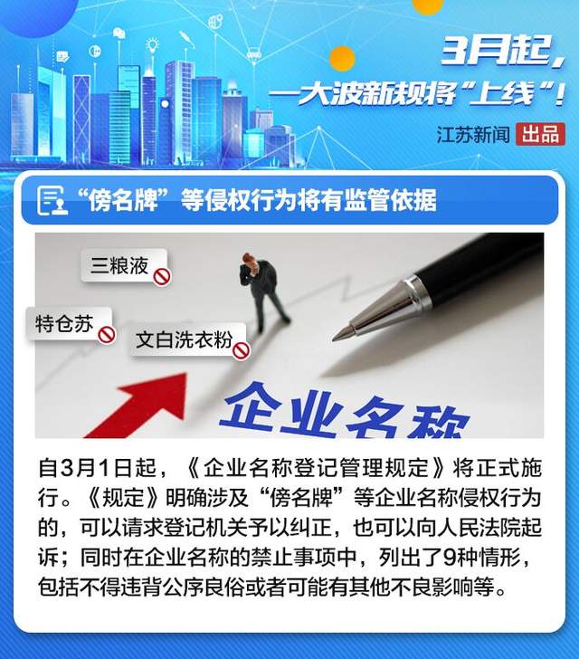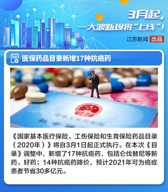 3月起一大批新规正式实施,与你息息相关。①企业取名“傍名牌”等侵权行为将有监管依据;②长江保护有了“专门法”,全方位保护母亲河;③新版医保药品目录启用,新增17种抗癌药;④常州:擅自在公园采花摘果违法……康康对你的生活有哪些影响?转发周知!
