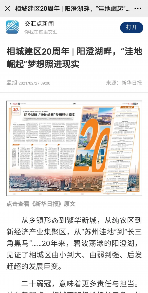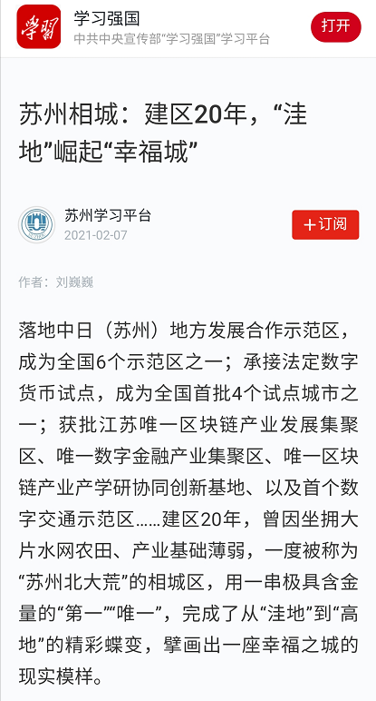 连日来,弱冠之年的苏州相城成了记者笔下和镜头中的焦点