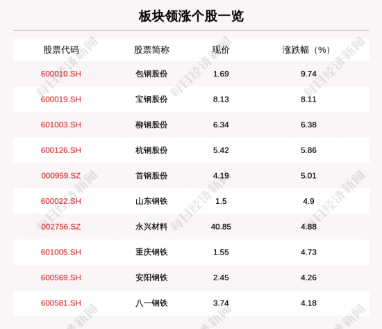 每经AI快讯,钢铁板块走强,板块内34只上涨,3只下跌,包钢股份、宝钢股份、柳钢股份分别涨9.74%、8.11%、6.38%。