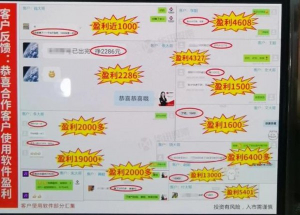 王女士默默观察了一段时间,发现推荐的股票有一些确实会暴涨,群里的其他客户也经常发出一些赚了钱的图片。