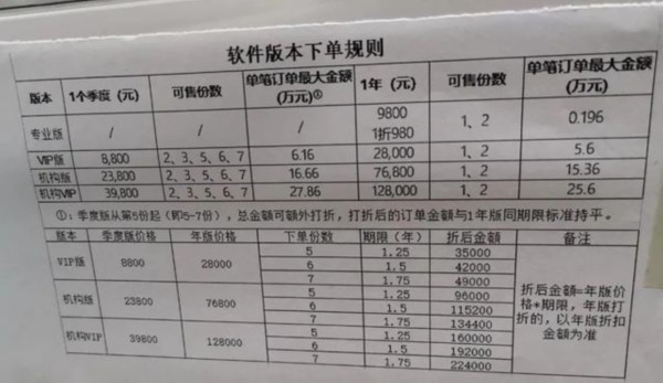 “华讯股票”App最便宜的会员,一年要收取8800元服务费,往上还有28000、39800、128000元不同档位。根据销售额不同,业务员能够从中拿到3%-10%的业绩提成。
