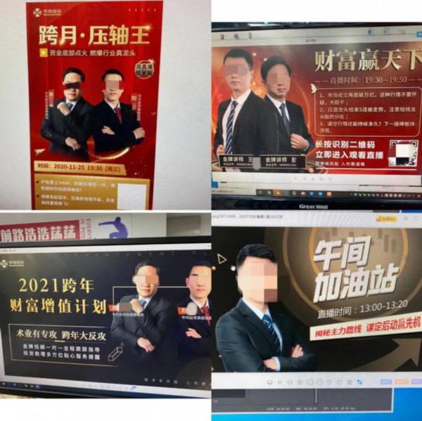 去年3月,股民王女士(化名)在浏览网页时看到“大连华讯”公司的广告,声称可以免费赠送三支“金股”。王女士关注后,被业务员拉进了该公司的一个荐股群。