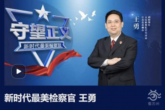 苏州市检察院党组成员、副检察长王勇被授予“守望正义——新时代最美检察官”称号。2月28日晚,中央电视台《社会与法》频道播出了“守望正义——新时代最美检察官”颁奖典礼。最高检党组书记、检察长张军为王勇颁奖,并号召全国广大检察官学习先进典型。
