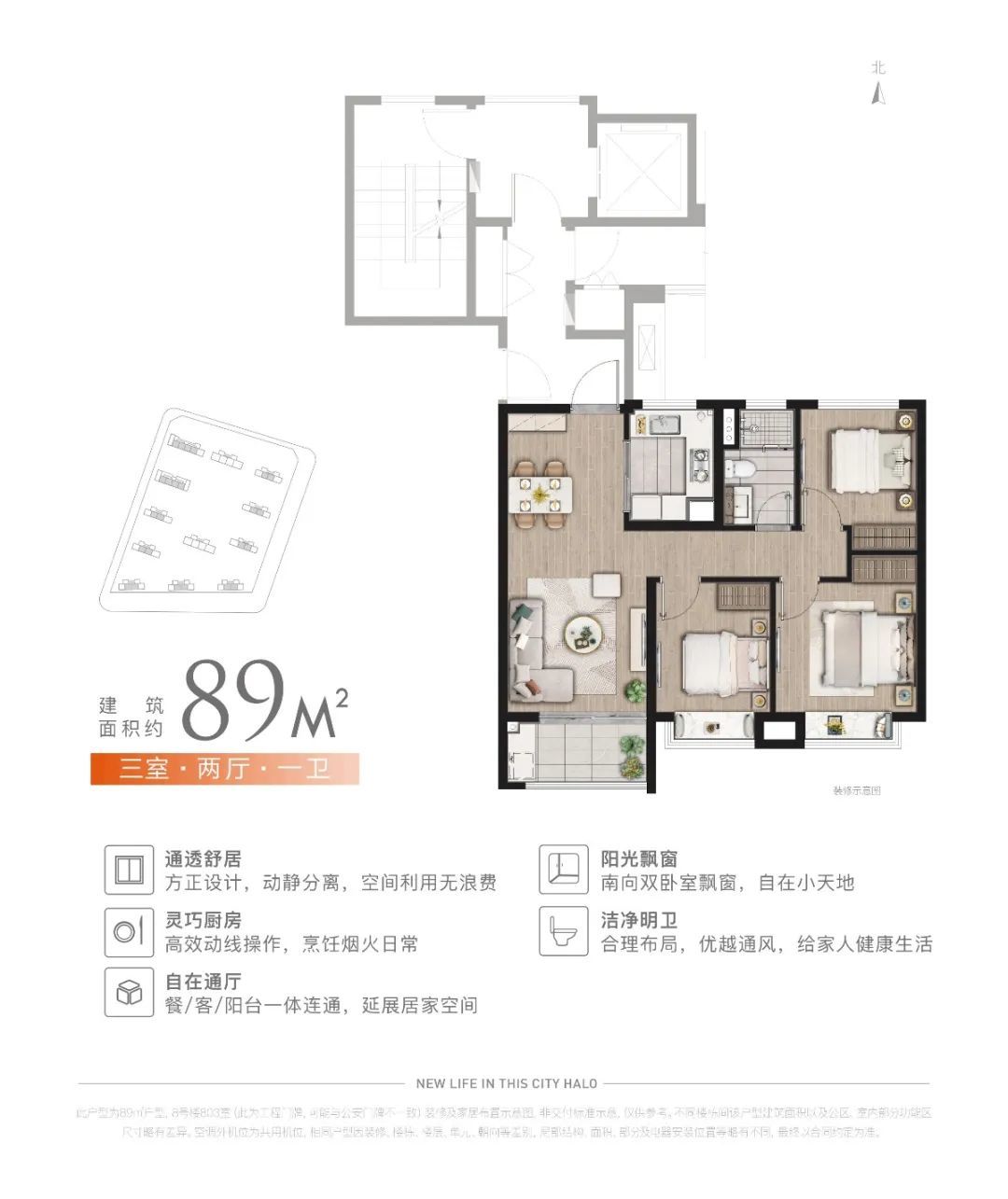 建筑面积约89㎡打造经典3房户型,户型方正,大面宽短进深,南向阳台/双卧室飘窗,通风采光条件大大提升。让年轻的客户可以做到经济和舒适的平衡;建筑面积约130㎡是户型中唯一四房,南向实现了4开间朝南的设计,外加南向双阳台,大大提升了户型的采光度和通透度。