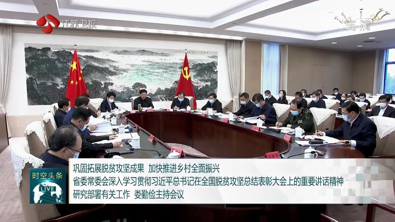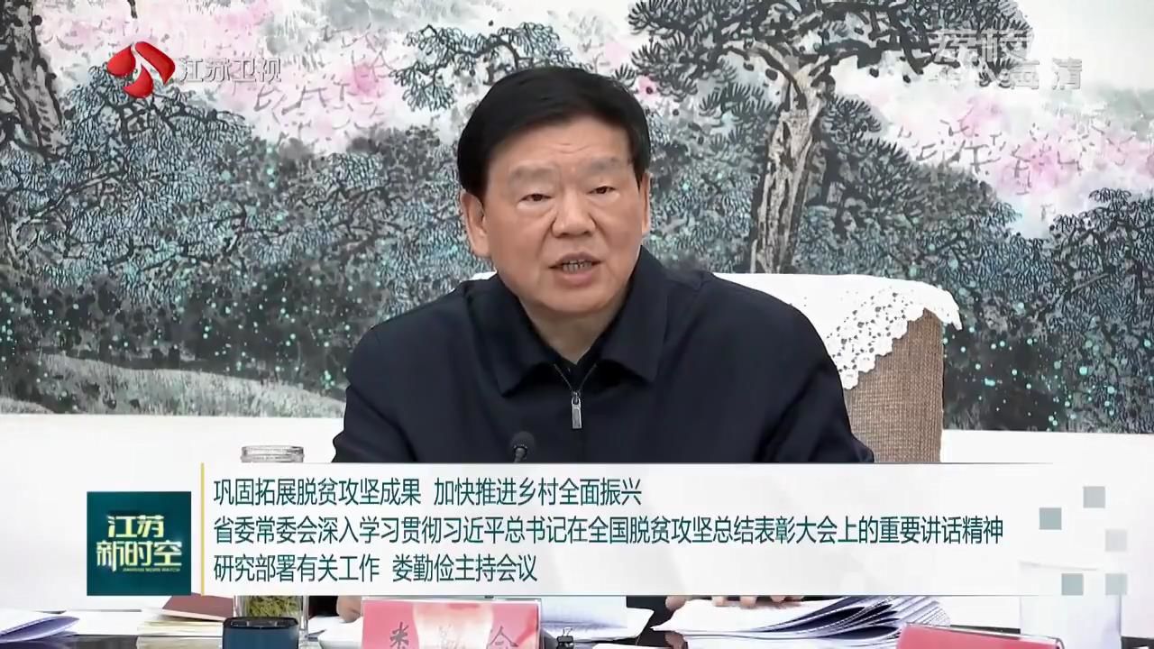 会议指出,要认真学习领会习近平总书记在全国脱贫攻坚总结表彰大会上的重要讲话精神,深刻理解脱贫攻坚战全面胜利的重大意义,深刻领悟中国特色减贫道路、中国特色反贫困理论的丰富内涵,深刻把握伟大脱贫攻坚精神的精神实质,深刻领会“脱贫摘帽不是终点,而是新生活、新奋斗的起点”的使命担当,以更加扎实有力的举措抓好贯彻落实工作。要巩固拓展脱贫攻坚成果,持续在重点地区开展帮促行动,着力构建低收入农户增收和经济薄弱村发展长效机制,让脱贫基础更加稳固、成效更可持续。按照摘帽不能摘帮扶的要求,坚持帮扶标准不降、支持力度不减,不断提高对口支援帮扶的实效,推动形成优势互补、携手共赢的新局面。要加快推进乡村全面振兴,坚持共同富裕根本方向,加快补齐地区、城乡、收入差距中的“三农”短板。坚持“四化”同步基本路径,系统谋划、一体推进产业发展、生活改善、环境整治、社区治理等工作。坚持集成改革重要方法,为乡村振兴提供坚强制度保障。做好苏北农房改善“后半篇文章”,立足实际探索苏南苏中地区农民住房条件改善工作。要认真做好省级总结表彰,组织开展系列宣传活动,大力宣传脱贫攻坚英模的感人事迹和崇高精神,充分发挥榜样引领作用,进一步激发全省干部群众披星戴月、披坚执锐、勇立新功的精气神。