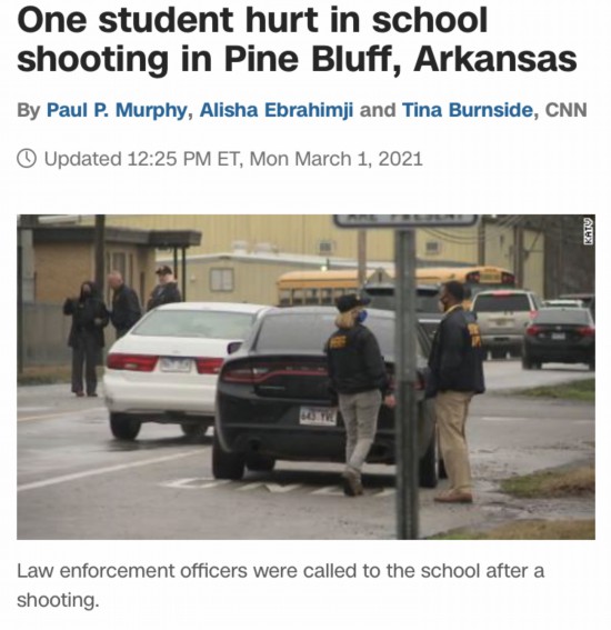 据当地警方介绍称,执法人员于当地时间3月1日10时左右接到报警称,美国阿肯色州松崖市内的沃森教堂高中发生枪击事件,当警方赶到现场时发现一名15岁学生身受重伤。警方在搜索附近区域时,抓捕到躲藏在某栋建筑物内的枪手。据悉,枪手年龄也在15岁左右,作案动机及细节等还在调查中。