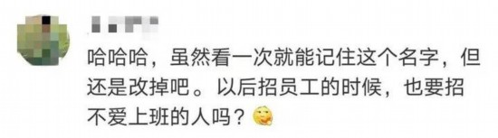 该公司股东刘含表示,实际运作中已发现“就不爱上班”作为公司名字不够严肃,公司名字如违规会申请改名。