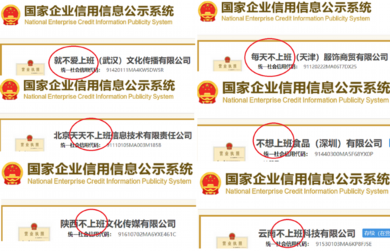 在国家企业信用信息公示系统查询到的部分“不上班”公司
