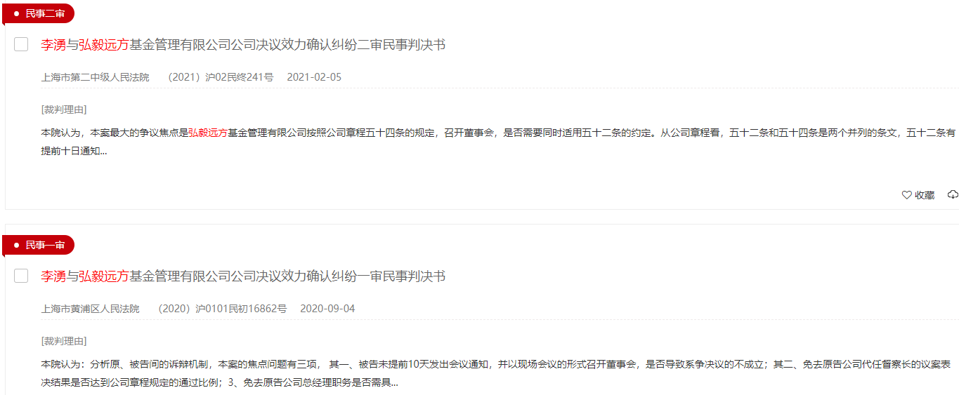 3月2日,澎湃新闻记者发现,裁判文书网上近期公布了李湧与弘毅远方基金一审和二审民事判决书,上海市黄浦区人民法院一审驳回李湧诉讼弘毅远方基金董事会决议不成立的请求,上海市第二中级人民法院二审维持一审判决,驳回李湧上诉请求。