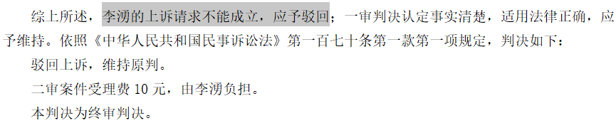 但李湧因不服上述判断,又向上海市第二中级人民法院提起上诉,该院于2021年1月6日立案,不过最终审理结果是“驳回上诉,维持原判”。