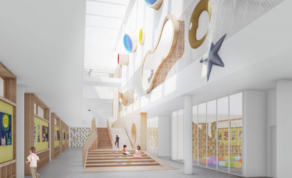幼儿园地上建筑面积约为1万平方米,设计上颜色柔和,富有童趣,配备了幼儿园活动休息一体室、美术教室、音乐教室、公共活动场地等,全力打造高品质的幼儿园教育环境。