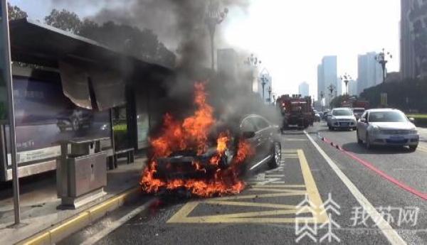 第二起自燃事故发生在上午9时31分,钟楼区茶花路和怀德路路口处一辆轿车也发生了自燃。外环路消防救援站迅速出动2车10人前往处置。