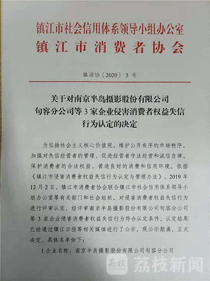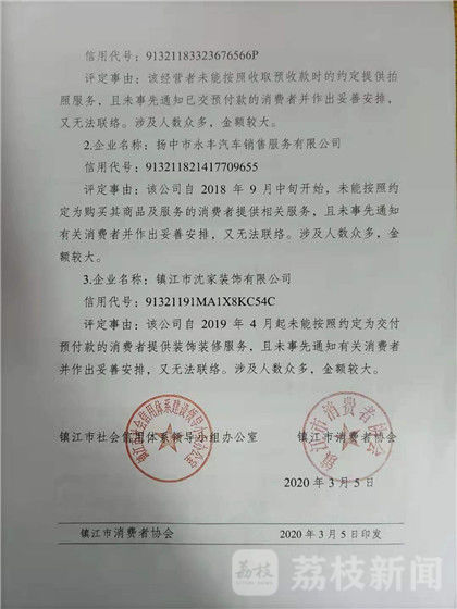 2019年12月,镇江市消协依据《镇江市侵害消费者权益失信行为认定与管理办法》,公示了侵害消费者权益失信行为3家企业名单,同时将失信行为的信息向信用监管部门推送,充分运用信用激励和约束机制,让守信者受益,失信者受限,形成褒扬诚信、惩戒失信的制度机制。