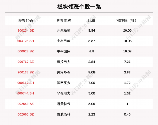 每经AI快讯,碳中和板块走强,板块内9只上涨,8只下跌,开尔新材、中材节能、中钢国际分别涨20.05%、10.05%、10.03%。