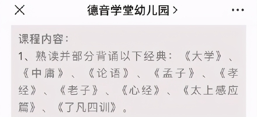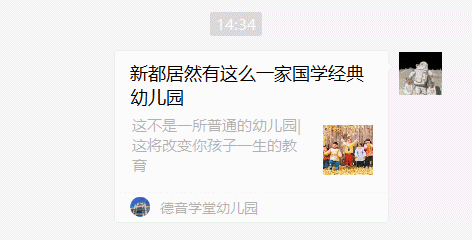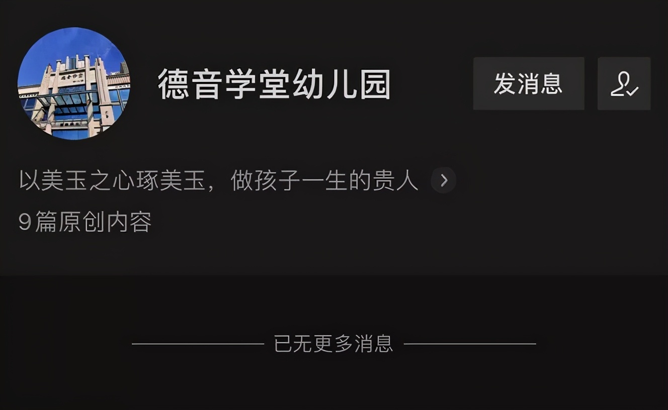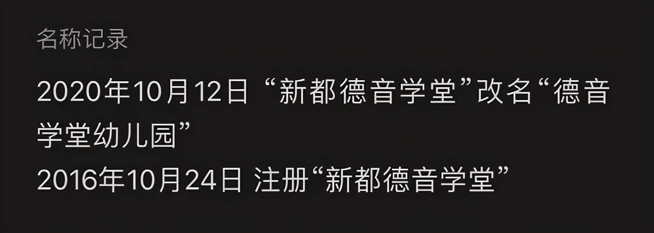 另外我还发现了一件很有趣的事情,在这个公众号的介绍信息中,我发现他们原本叫「 新都德音学堂 」,去年 10 月份才改名叫「 德音学堂幼儿园 」。