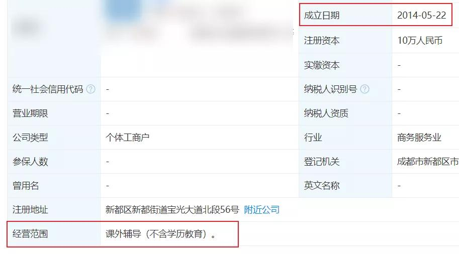 再对比下德音学堂的工商信息,你会看得更清楚,在去年之前这家学堂做了 6 年的课外辅导。