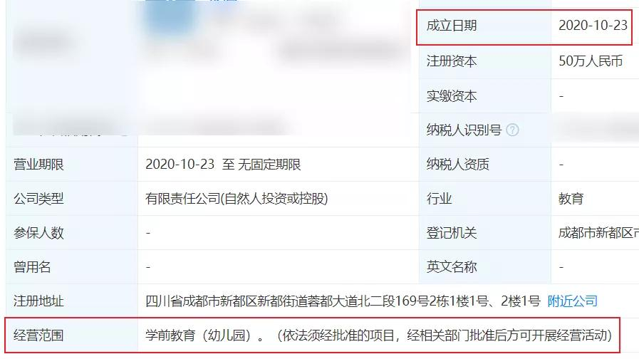 呐,这是德音学堂幼儿园的工商信息,其实他们是去年才有的幼儿园资质。