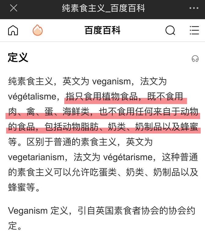 素食主义分很多种,有的仅仅是不吃肉类,有的所有包括鱼、蛋、奶在内的所有荤类都不吃,后者也就是纯素食 / 全素食。