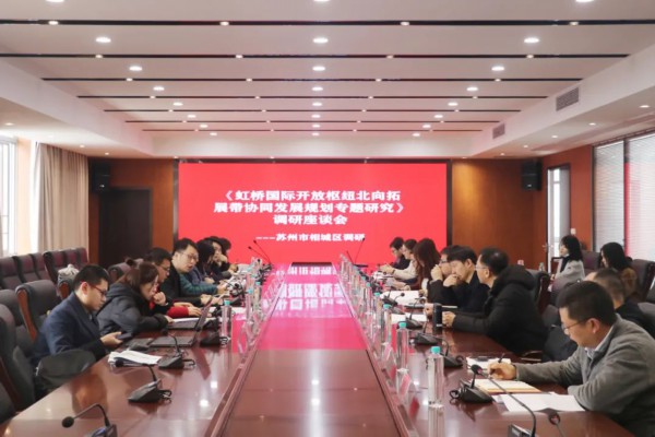 昨天(3月4日)上午,《虹桥国际开放枢纽北向拓展带协同发展规划专题研究》(苏州市相城区)调研座谈会召开,与会专家学者、区级机关相关部门负责人围绕虹桥-相城一体化产业协同发展现状,相城当前六大新经济产业布局、国际贸易、交通枢纽、创新研发等五个方面的内容进行了交流讨论。