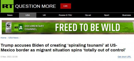 “在拜登的领导下,(局势)将很快变得比以往任何时候都更糟糕、更危险、更失控。”据“今日俄罗斯”(RT)报道,美国官员们准备迎接前所未有数量的移民儿童之际,美国前总统特朗普当地时间3月5日发表声明,指责现任总统拜登让美墨边境的局势“完全失控”。