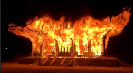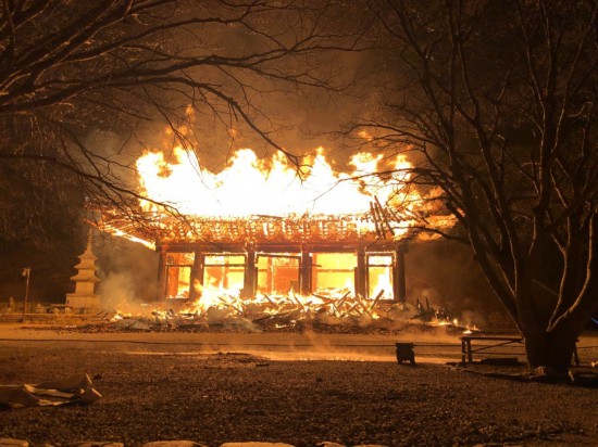 海外网3月6日电 据韩联社报道,当地时间5日晚上,韩国全罗北道千年古寺内藏寺遭人纵火,虽然消防队员奋力扑救,但木制建筑大雄宝殿还是被完全焚毁,令韩国网友直呼心痛和愤怒。据悉,被毁的大雄宝殿是文物,财产损失高达17亿韩元(约合人民币979万元),所幸无人伤亡。