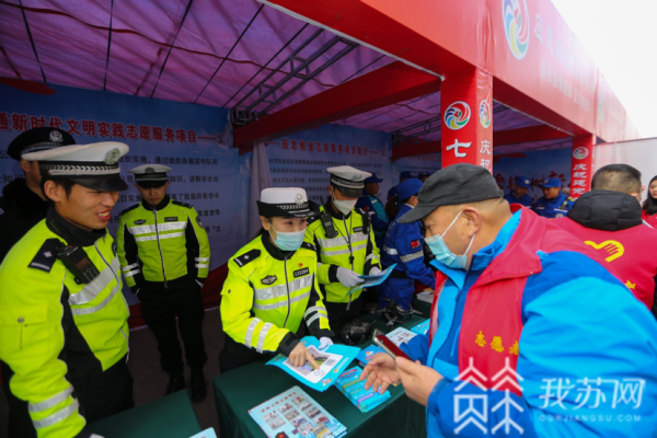 3月5日上午9点,由沭阳交警大队10位民辅警组成的“文明交通志愿服务队”以崭新的面貌出现在了沭阳县乐之地广场上,开展“七彩志愿,情暖花乡”主题学雷锋志愿服务行动。