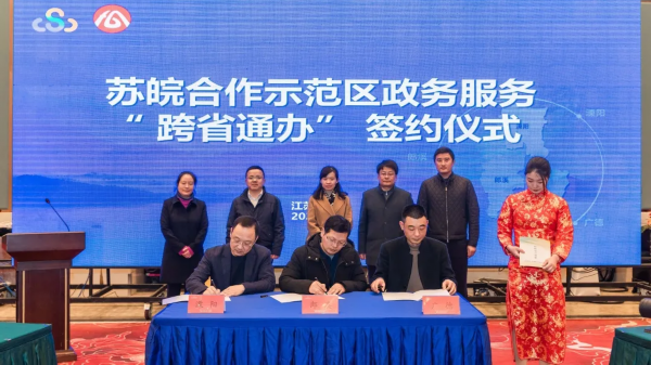 3月3日,溧阳市行政审批局与安徽省广德市数据资源管理局、安徽省郎溪县数据资源管理局,签订苏皖合作示范区政务服务“跨省通办”战略合作协议。两省三地携手,打造“标准统一、异地受理、远程办理、协同联动”的“跨省通办”政务服务模式。根据合作协议,到今年7月底,74项高频政务服务事项将在三地实现“跨省通办”。
