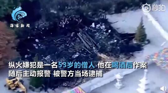 纵火嫌犯是一名53岁的僧人,他在喝酒后作案,随后主动报警,被警方当场逮捕。