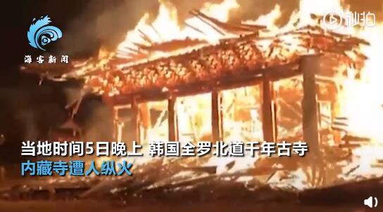 当地时间5日晚上,韩国全罗北道千年古寺内藏寺遭人纵火。