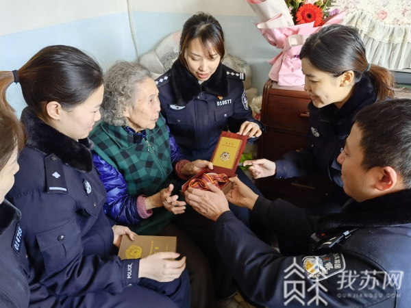 三八妇女节前夕,秦淮分局止马营派出所组织全体女民警前往参加过抗美援朝的女战士冷灵家中,开展了“女警听女兵讲党史”的活动,给她送上了鲜花,致以节日的慰问,聆听了冷老讲述入朝参战的故事。