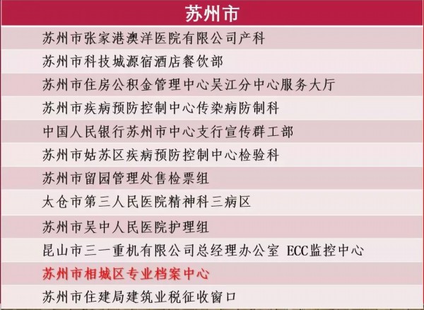 苏州市相城区专业档案中心位于相城区元和街道润益巷润南大厦,中心现有区档案局、民政局、财政局、住建局、退役军人事务局、行政审批局、市场监管局、资规分局、税务局、经发公司10家单位入驻,主要承担专业档案实体保管、寄存、整理、信息化、利用服务工作。中心现有工作人员22名,其中女性16名,占员工总数的73%。