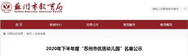 苏州市教育局颁发了《关于做好2020年下半年度“苏州市优质幼儿园”评估验收工作的通知》(苏教基函[2020]126号),并于2020年10-11月组织专家对以下幼儿园进行了现场考察,经评估验收的幼儿园名单如下。如有疑义,可打电话向有关部门反映。联系电话:0512—65151159。