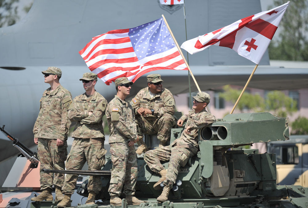 2017年8月1日,在格鲁吉亚第比利斯阿莱克塞瓦克空军基地,美军士兵参加“高贵伙伴”多国联合军演。(新华社发,塔穆娜摄)