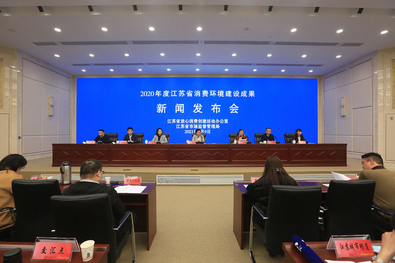 为进一步加强放心消费创建,营造安全放心消费环境,3月9日,江苏省放心消费创建活动办公室、省市场监管局召开新闻发布会,专题通报2020年度江苏省消费环境建设情况。省市场监管局二级巡视员陈柯出席并讲话。江苏省住建厅、省通信管理局、省邮政管理局等省放心消费创建活动办公室成员单位相关部门负责人参加发布会。