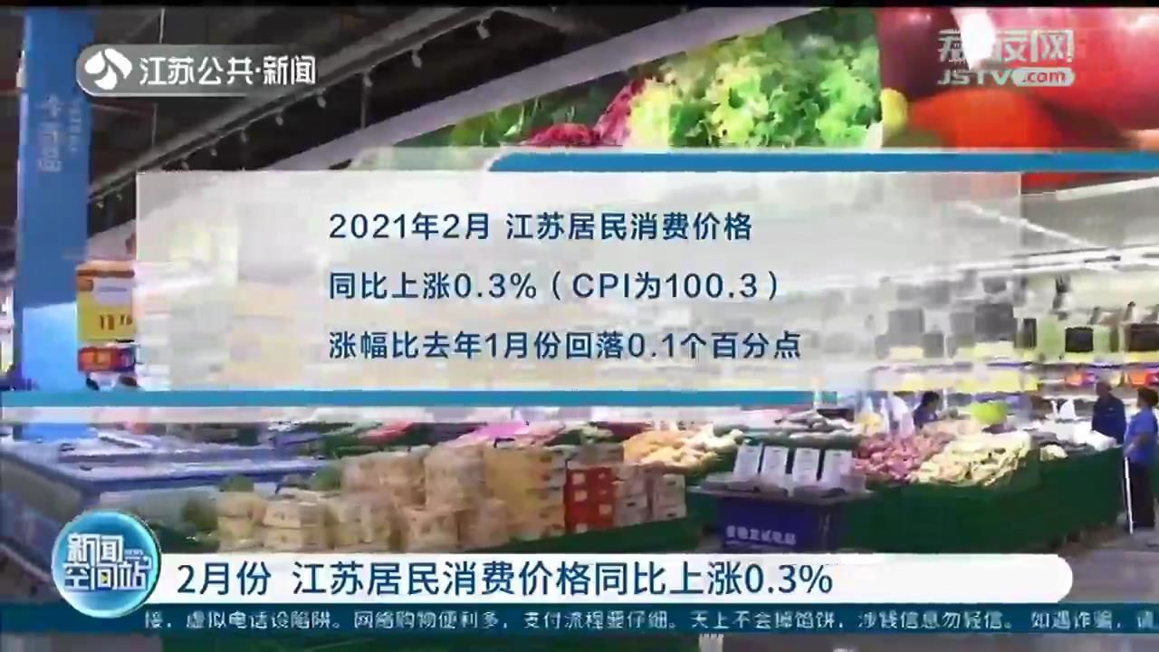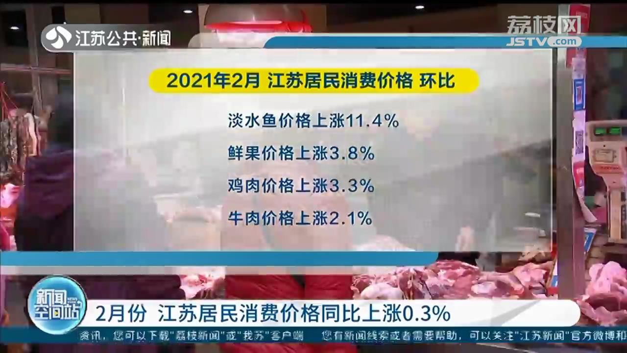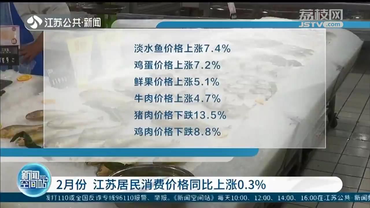 3月10日,记者从国家统计局江苏调查总队获悉,今年2月份,江苏居民消费价格同比上涨0.3%,其中猪肉价格下跌明显,拉动CPI下降0.34个百分点。