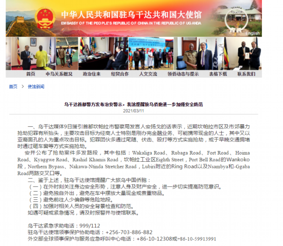 二、鉴于上述,驻乌干达使馆提醒广大旅乌中国侨胞: