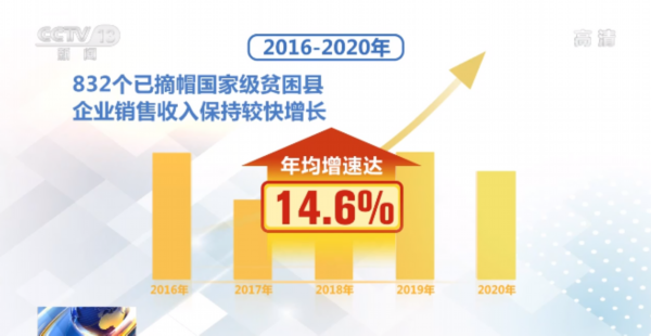 用于脱贫攻坚的减税降费效果怎么样?从增值税发票数据看,2016—2020年,832个已摘帽国家级贫困县企业销售收入保持较快增长,年均增速达14.6%。其中,2019年增速提升至18.7%,2020年虽受到新冠肺炎疫情影响,但仍保持15.9%的水平,比全国企业平均水平高9.9个百分点,反映出已摘帽贫困县企业发展态势良好。