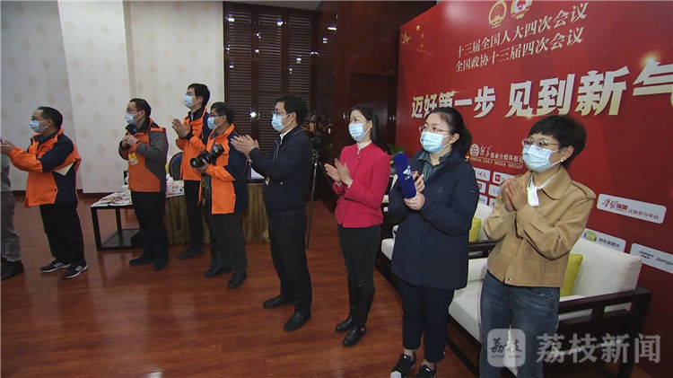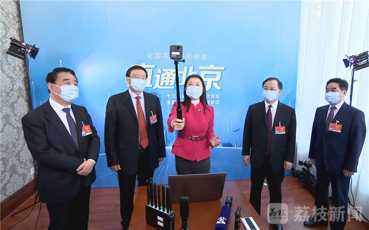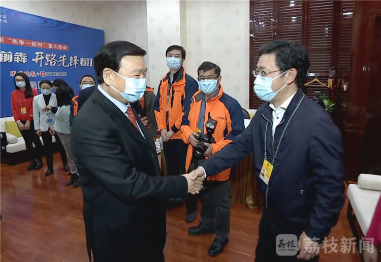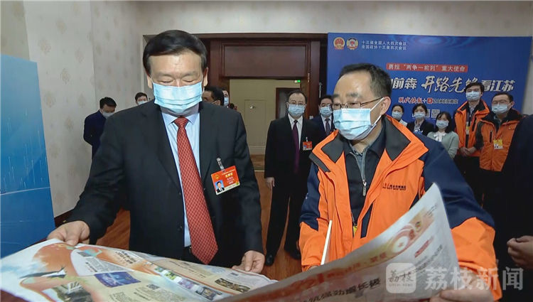 荔枝新闻讯 11日上午,出席十三届全国人大四次会议的省委书记、省人大常委会主任娄勤俭,省委副书记、省长吴政隆来到新华报业传媒集团、江苏广电总台、现代快报等新闻单位设立在北京国二招宾馆的新闻直播室,看望随团记者、编辑,并通过大家向全省新闻工作者表示慰问,希望我省新闻战线坚持以习近平新时代中国特色社会主义思想为指导,围绕学习贯彻落实习近平总书记视察江苏重要讲话指示精神和全国两会精神,充分发挥各自优势,进一步做好新闻舆论工作,为“十四五”开好局起好步、开启现代化建设新征程营造浓厚氛围、汇聚强大力量。