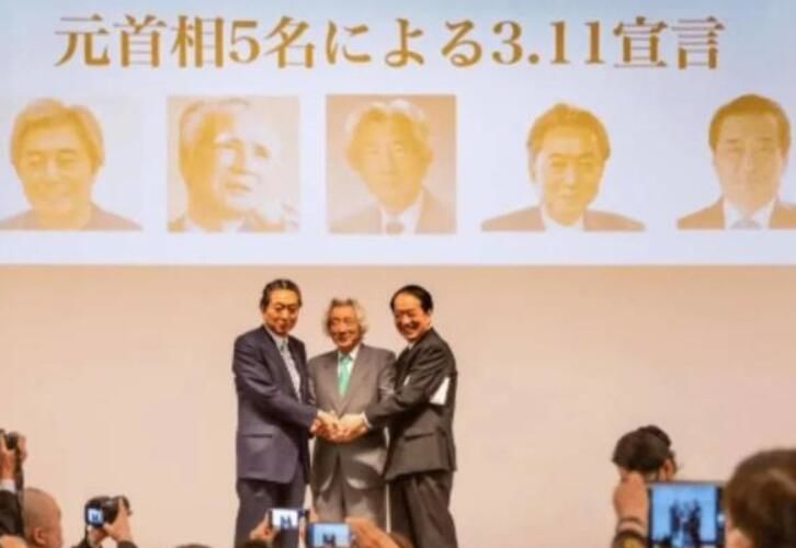 上述五位日本前首相11日当天发表了共同署名的“零核电”宣言,在宪政纪念馆的会议现场,小泉纯一郎、鸠山由纪夫和菅直人在台上手握手合影。在此之前不久,小泉纯一郎和菅直人3月1日也曾在东京召开记者会,表示“希望日本成为在零核电状况下发展的国家”,呼吁废除核电,并扩大引进可再生能源。