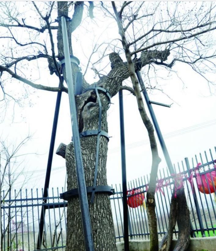 这棵古栾树历经磨难,能生存下来,实属不易。“2012年8月,大树的一根主树梢因虫蛀经风吹雨打折断。后清除周边障碍物,对古树进行围栏保护,并对古树周边土壤环境进行改善。”张用宪介绍,2016年6月,古树主干腐蚀严重,主干内部大部分腐烂,只剩小部分树皮正常提供养分。如不及时修复,后果不堪设想。后在农林专家的努力下,对古树进行施救。2019年8月2日深夜,古栾树东北侧主干再次折断,后及时对古树树冠进行了修剪。